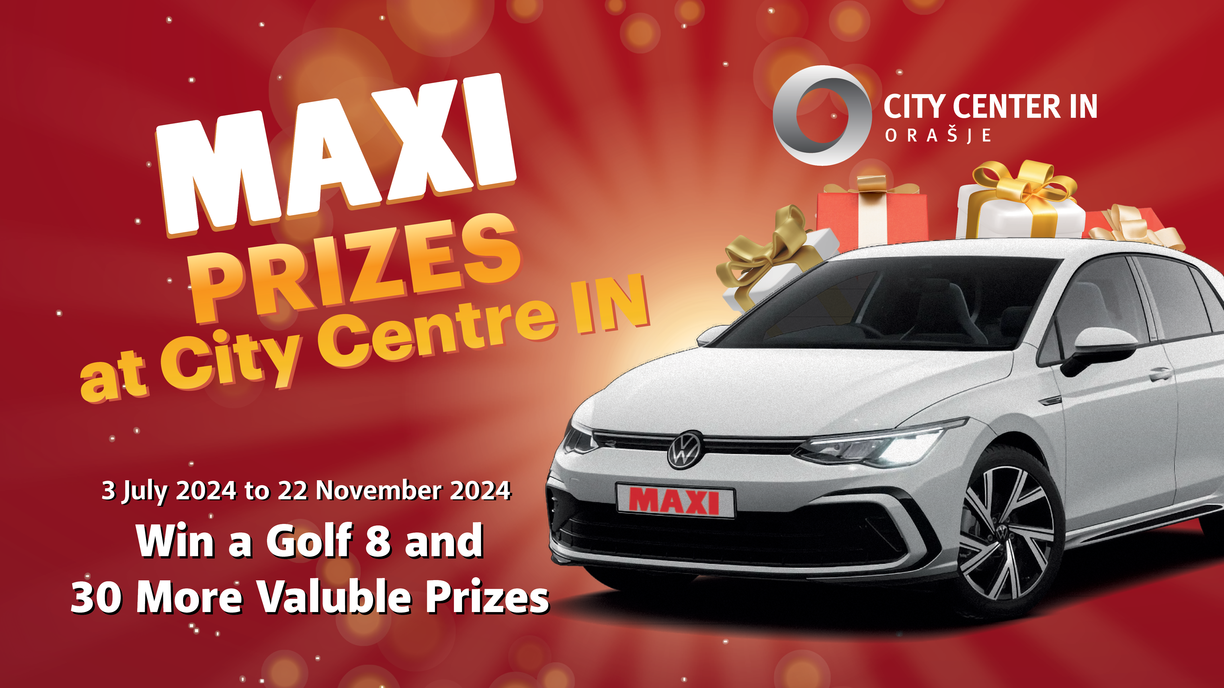 Final draw of the prize competition “MAXI PRIZES AT CITY CENTRE IN”, where you can win a Golf 8 and 30 more valuable prizes.